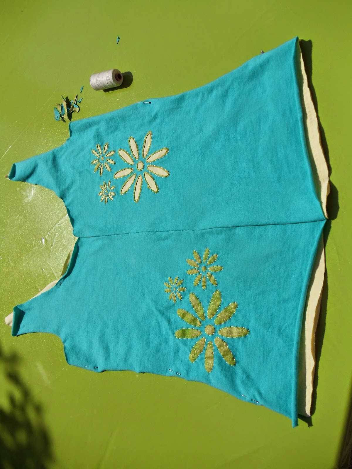 fündig (türkis als Oberstoff und zartes gelb als Unterstoff) und seither trauere ich den ganzen T-Shirts nach, die nach und nach in